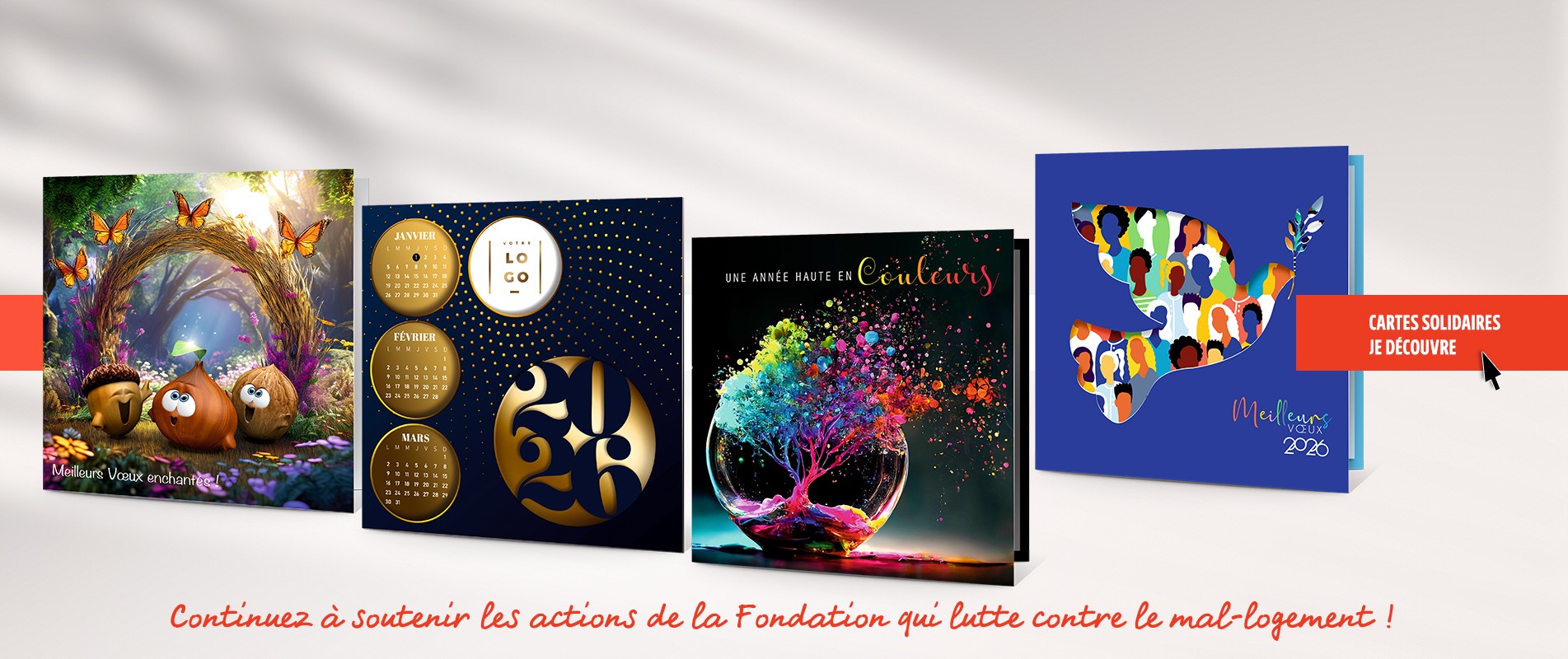 Partenaires depuis plus de 25 ans de la Fondation pour le Logement, les éditions du Pays d'AixCréateur-éditeur solidaire de cartes de vœux sur support papier ou numérique. 97% des ressources de la Fondation proviennent de la générosité du public et du mécénat. Le soutien des donateurs est déterminant pour lui permettre de continuer d’agir, d’interpeller en toute indépendance et préserver son rôle central dans le combat contre le mal-logement et les exclusions. En commandant nos cartes de vœux, vous soutiendrez les actions de la Fondation pour le logement des défavorisés