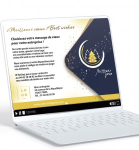 À partir de 335,00 € HTLes cartes de voeux de Noël ne sont plus ringardes ! la preuve en vidéo ! Voici notre carte de vœux éléctronique entreprise chic, élégante, tendance et recherchée pour 2026 ! Près de 50 modèles d'ecards pour entreprises, associations, collectivités et administrations vous attendent sur notre site. Pour booster votre communication de fin d’année, nous vous proposons nos offres de packs numériques (ecard + signature mail + éventuellement posts RS) plus efficaces pour toucher tous vos contacts et ...plus avantageuses ! NOUVEAU ET IMPORTANT POUR TOUS VOS ENVOIS DE MAILS ET NEWSLETTERS ! Nous vous proposons de nettoyer et de tester entièrement votre fichier d'adresses mail et de vous le restituer clean avant l'envoi de vos campagnes de voeux par ecards ... enfin un fichier de contacts mails sans problème ! Contactez notre service au 04 42 16 38 92. Pour votre ecard vidéo, n'augmentez pas la quantité. Une seule suffit ! Si vous souhaitez commander plusieurs ecards (une par service ou par collaborateur, par exemple), appelez-nous au 04 42 16 38 92. -