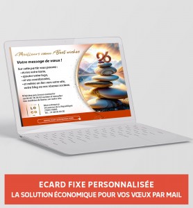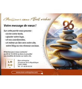 À partir de 189,00 € HTChoisissez cette jolie ecard de voeux zen et touchez un large public ! Associez votre carte de vœux papier "plénitude" à une ecard fixe mettant en avant une image relaxante . Envoyez cette ecard par mail à tous vos clients pour partager vos vœux de paix et de sérénité . Cette combinaison visuelle unique attirera l'attention et créera un impact durable. Offrez une expérience exceptionnelle à vos clients en leur souhaitant une année nouvelle remplie de succès et de bien-être , tout en renforçant votre présence auprès d'eux. Envoyez simplement vos vœux par mail à tous vos contacts. -