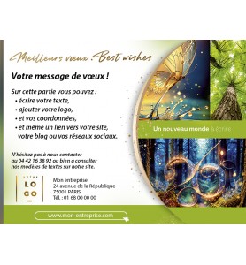 À partir de 189,00 € HTÉmerveillez vos proches avec notre e-card écologique de voeux 2026 saisissante. Envoyez vos vœux avec style grâce à notre e-card fixe . Mettant en valeur un design élégant et éco-responsable , cette carte vous permettra d'impressionner vos clients tout en transmettant un message fort en faveur de l' environnement . Optez pour une approche moderne et engageante pour vos vœux cette année, en choisissant notre e-card fixe qui illustre votre engagement pour un avenir durable . Montrez à vos clients que vous êtes à la pointe de la technologie tout en étant soucieux de l' environnement . Envoyez simplement vos vœux par mail à tous vos contacts. -
