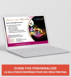 À partir de 189,00 € HTEnvoyez une ecard harmonieuse pour transmettre vos vœux de manière unique ! Personnalisez votre carte de vœux électronique, ajoutez votre logo , votre texte et un lien vers votre site internet . Une fois personnalisée , envoyez-la simplement par mail . Utiliser cette ecard harmonieuse est très facile ; il vous suffit de ré-expédier le mail à tous les contacts de votre carnet d'adresses . Ainsi, vos proches recevront votre message de vœux directement dans le corps du mail. Envoyez simplement vos vœux par mail à tous vos contacts. -
