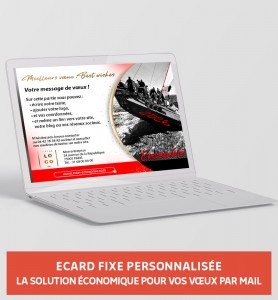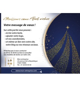 À partir de 189,00 € HTBoostez votre communication en combinant carte de voeux papier thématique et ecard fixe ! La carte de vœux professionnelle se transforme maintenant en une ecard statique captivante ! Cette ecard fixe met en valeur un design original pour souhaiter ses voeux pour Noël ou la nouvelle l'année. Envoyez simplement vos vœux par mail à tous vos contacts. -