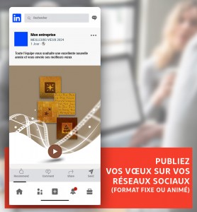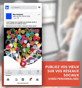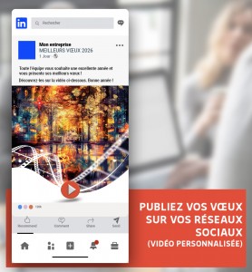À partir de 215,00 € HTUne signature d'une grande finesse pour vos posts réseaux sociaux pendant les fêtes de Noël ! Lors des vœux de fin d'année, fusionne z votre communication numérique avec nos ecard video. Accordez votre visuel sur les réseaux sociaux ou votre site web à cette image distinctive pour créer un message homogène et mémorable. Marquez cette période spéciale en projetant une image moderne à travers tous vos canaux. Intégrez ce visuel sur vos comptes réseaux sociaux, dans vos blogs ou sur votre site web. -