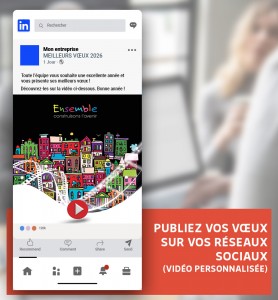 À partir de 215,00 € HTFaites parler de votre entreprise sur les réseaux sociaux avec un visuel de vœux dynamique ! Boostez votre présence sur les réseaux sociaux en optant pour un visuel identique à votre ecard video, dynamique et percutante. Avec ce visuel de vœux prêt à l'emploi, vous pourrez faire de Facebook , Instagram ou LinkedIn votre porte-parole. Mettez en avant vos engagements et réalisez des publications professionnelles pour vos vœux d'entreprise. Donnez à votre entreprise une image moderne et impactante sur les réseaux sociaux avec ce visuel de vœux personnalisé . Intégrez ce visuel sur vos posts réseaux sociaux, dans vos blogs ou sur votre site web. -