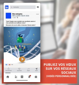 Nos post de fin d'année pour vos réseaux sociaux professionnels ont pour but de booster votre communication digitale. Nos bannières web vidéo pour tous vos réseaux sociaux sont assorties aux ecards de vœux ou aux cartes de vœux papier. Elles sont le complément de toute campagne de vœux 2027 cohérente et efficace. Une opportunité à ne pas rater !