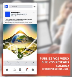 À partir de 215,00 € HTRendez votre profil Facebook et LinkedIn plus percutant avec le visuel assorti à votre carte de vœux ! Dynamisez votre présence sur les réseaux sociaux avec notre bannière sur le thème de la réussite. Donnez un souffle nouveau à votre page Facebook ou LinkedIn en l 'associant à votre carte de vœux et vos ecards. Remplacez facilement et temporairement par ce visuel énergique qui transmettra positivité et motivation. Attirez l'attention de votre audience avec un design accrocheur et personnalisé. Intégrez ce visuel sur vos posts réseaux sociaux, dans vos blogs ou sur votre site web. Pour booster votre communication de fin d’année, nous vous proposons nos offres de packs numériques (ecard + signature mail + éventuellement posts RS) plus efficaces pour toucher tous vos contacts et ...plus avantageuses ! NOUVEAU ET IMPORTANT POUR TOUS VOS ENVOIS DE MAILS ET NEWSLETTERS ! Nous vous proposons de nettoyer et de tester entièrement votre fichier d'adresses mail et de vous le restituer clean avant l'envoi de vos campagnes de voeux par ecards ... enfin un fichier de contacts mails sans problème ! Contactez notre service au 04 42 16 38 92 -
