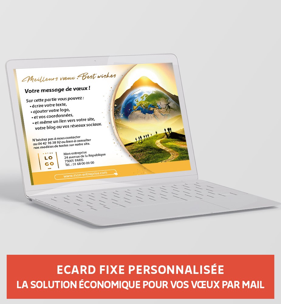 Illustrer votre engagement solidaire au sein de votre entreprise en communiquant à l'aide d'une ecard fixe personnalisable.