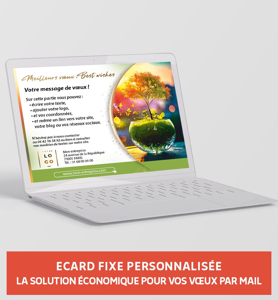 Personnalisez votre carte de vœux électronique, ajoutez votre logo, votre texte et un lien vers votre site internet. Une fois personnalisée, envoyez-la simplement par mail. Utiliser cette ecard harmonieuse est très facile ; il vous suffit de ré-expédier le mail à tous les contacts de votre carnet d'adresses. Ainsi, vos proches recevront votre message de vœux directement dans le corps du mail.