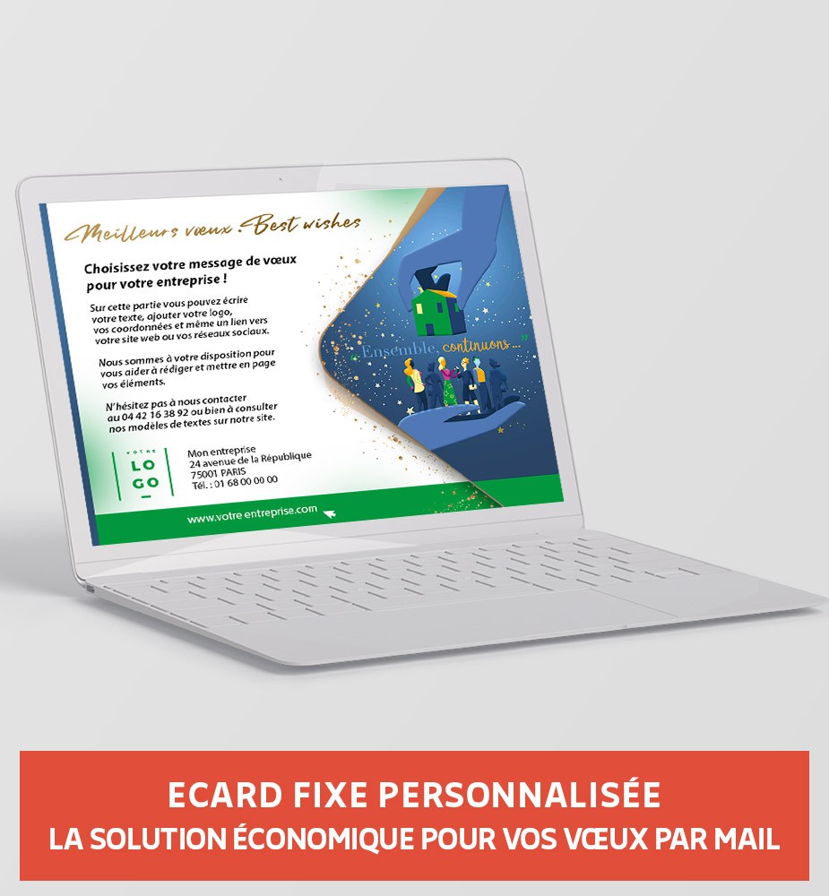 Faites preuve d'engagement en ce début d'année en envoyant votre message de vœux solidaire à un large public. Offrez à tous vos clients et collaborateurs une ecard professionnelle et personnalisable, avec un message fort et engagé. Exprimez vos vœux d'une manière unique et mémorable.