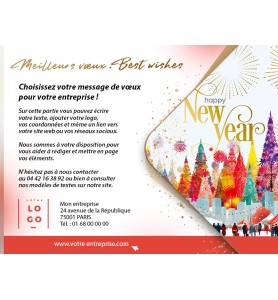 Simplifiez l'envoi de vos vœux en ce début d'année avec cette ecard colorée. Optez pour la sérénité en envoyant ce message personnalisable par mail à un grand nombre de personnes. Cette ecard de vœux professionnelle et luxueuse sera appréciée par tous vos clients et collaborateurs. Faites le choix de la praticité et de l'efficacité pour transmettre vos vœux de manière professionnelle et personnalisée, tout en créant une atmosphère chaleureuse et festive.