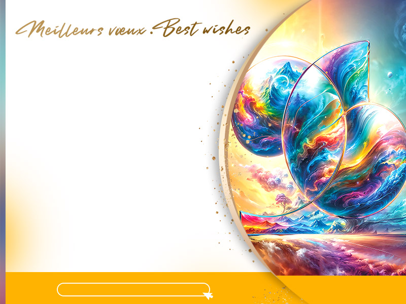 Découvrez notre ecard de vœux fixe où chaque détail est soigneusement conçu pour transmettre des messages de vœux modernes et graphiques. Avec son design spacial et coloré, cette carte de vœux captivera l'attention de vos collaborateurs et clients.
