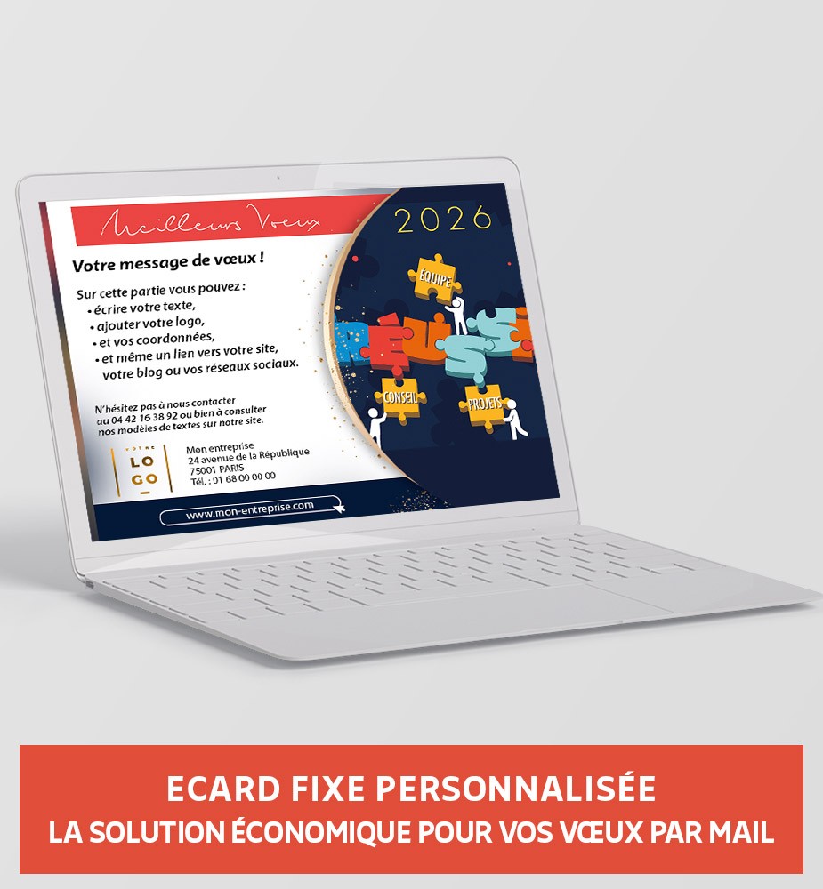 Touchez plus de monde en associant votre carte de vœux sur le thème du succès en équipe à une e-card fixe. Mettez en avant cette image inspirante en l'envoyant par mail à tous vos clients. C'est l'occasion de partager votre vision de la réussite collective et de renforcer les liens avec votre réseau professionnel. Montrez à vos clients que vous valorisez le travail d'équipe et que vous êtes prêt à atteindre de nouveaux sommets ensemble. Cette e-card fixe sera un moyen efficace de transmettre vos vœux et de toucher un large public.