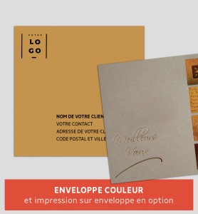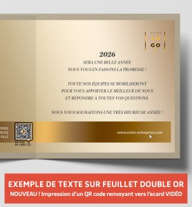 La personnalisation de votre message se fera sur un feuillet double or et l’enveloppe or métallisé est vivement recommandée pour une harmonie de couleurs ton sur ton du plus bel effet.