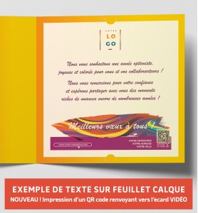 Tous nos modèles de cartes de vœux 2027 en papier sont déclinés en versions électroniques assorties : ecard de vœux vidéo musicale, ecard professionnelle animée en GIF à insérer dans vos mails, signatures mail entreprise et posts pour vos réseaux sociaux et votre site web.