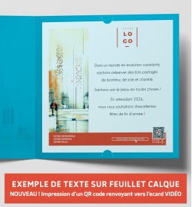 Tous nos modèles de cartes de vœux 2027 en papier sont déclinés en versions électroniques assorties : ecard de vœux vidéo musicale, ecard professionnelle animée en GIF à insérer dans vos mails, signatures mail entreprise et posts pour vos réseaux sociaux et votre site web.