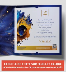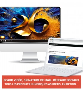 Tous nos modèles de cartes de vœux 2026 en papier sont déclinés en versions électroniques assorties : ecard de vœux vidéo musicale, ecard professionnelle animée en GIF à insérer dans vos mails, signatures mail entreprise et posts pour vos réseaux sociaux et votre site web.