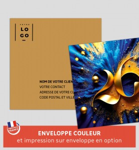 Elle vous recommande également d’opter pour une enveloppe or métallisé (option), le rendu sera très élégant, parfait pour une carte de vœux professionnelle. Afin de vous accompagner durant votre création, vous pouvez solliciter nos conseillers. Il se feront un plaisir de répondre à vos questions et de vous aider.