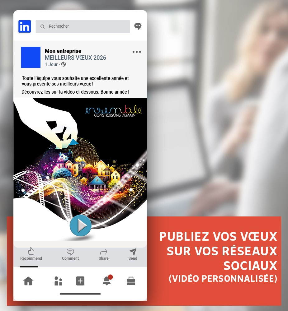 Lot de Visuels vidéo assorti à vos vœux électroniques ou cartes de voeux papier à insérer dans vos entêtes de réseaux sociaux LinkedIn, Facebook, Instagram.
