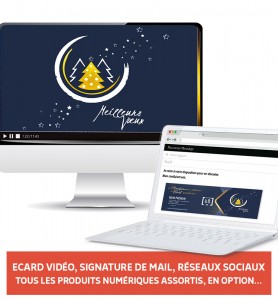 Tous nos modèles de cartes de vœux 2026 en papier sont déclinés en versions électroniques assorties : ecard de vœux vidéo, ecard professionnelle animée en GIF à insérer dans vos mails, signatures mail entreprise et posts pour vos réseaux sociaux et votre site web. Pour booster votre communication de fin d’année, nous vous proposons des packs numériques plus efficaces et avantageux ou nos offres mixant les cartes de vœux papier et digitales.