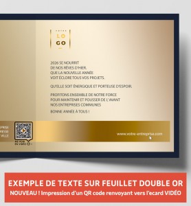 La personnalisation de votre message se fera sur un feuillet double or et l’enveloppe or métallisé (en option) est vivement recommandée pour une harmonie de couleurs ton sur ton du plus bel effet.